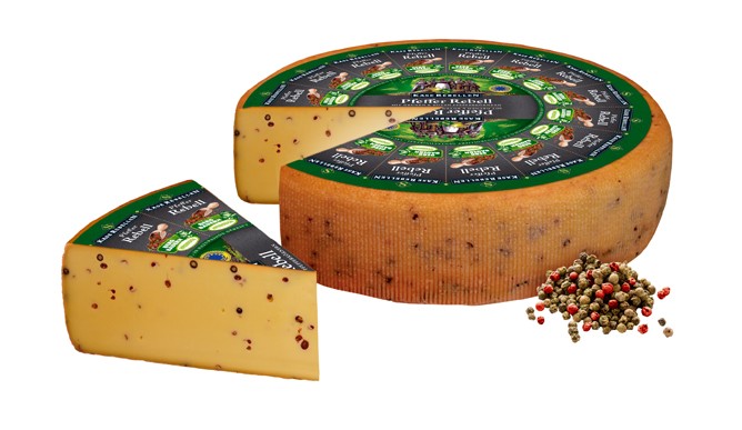 Semi-hard cheese made from daily fresh hay milk and refined with selected types of pepper.