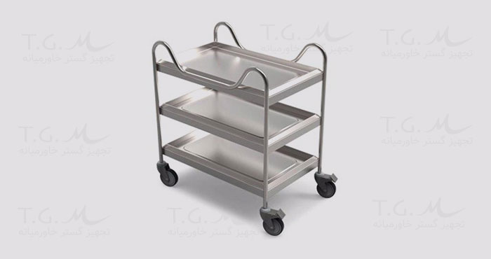 The trolley for carrying clean dishes is usually metal and made of steel so that it can carry more dishes and dishes, and it can be cleaned well after washing and always keep its shine. This trolley does not rust after washing and after washing it can be dried with a soft towel so that no water stains remain on it and it always shines.
