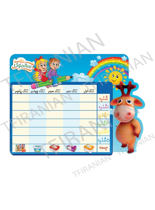 برنامه درسی مگنتی، برنامه درسی تبلیغاتی شما است که با طرح و سایز دلخواه شما تولید می شود و روی تمام سطوح فلزی از جمله روی یخچال و کابینت ها و ... قابل نصب است. این محصول به دلیل کاربردی بودن برای هر صنفی که به نوعی با کودکان و نوجوانان مرتبط است نظیر مراکز آموزشی، مشاوره ای، فروشگاه های محصولات کودک و نوجوان و.... تبلیغات مناسبی است.