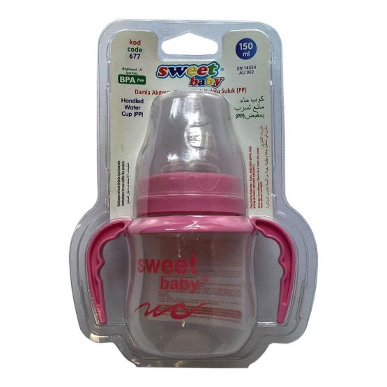 لیوان آب خوری دسته دار سوییت بیبی ۱۵۰ میل مدل ۶۷۷ صورتی ساخته شده از بهترین مواد اولیه فاقد فتالات ها