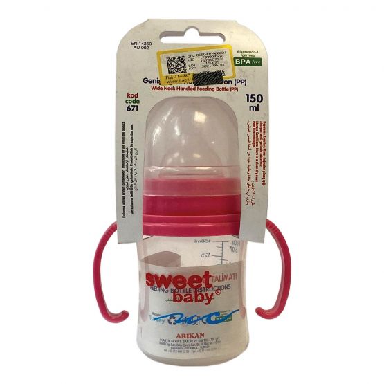 شیشه شیر 150 میلی لیتر دسته دار با دهانه عریض مدل 671