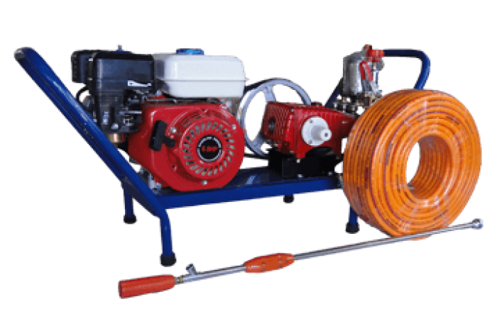 AG-۴۵bar چنانچه در سمپاشی نیازی به حمل مخزن نباشد می توان از این نوع سمپاش استفاده نمود. این سمپاش دارای وزن بسیار پایینی می باشد و نیرو محرکه‌ی آن به وسیله موتور تک بنزینی ۶٫۵ اسب طرح هوندا تأمین می گردد. این مجموعه شامل موارد زیر است: موتور تک بنزینی ۶٫۵ اسب طرح هوندا پمپ سمپاش ۴۵ بار به همراه شیلنگ های رفت و برگشت و سایر قطعات مربوطه شیلنگ ۵ لایه فشار قوی لانس ۸۰ سانتی متری