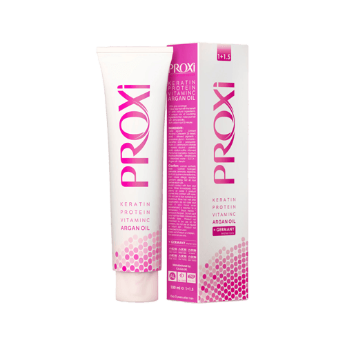 رنگ موی پروکسی یک رنگ تخصصی است که دارای فرمولاسیون غنی از کراتین، سبوس برنج، روغن های آرگان، آفتابگردان، جوانه گندم، زیتون، کرچک، نارگیل و نرم کننده های طبیعی می باشد.