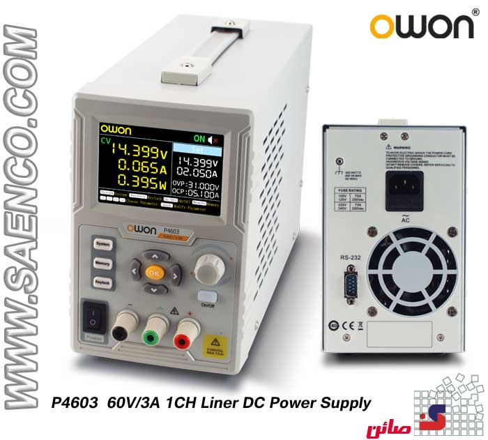 منبع تغذیه تک کانال ۶۰V/۳A DC مدل P۴۶۰۳ ساخت OWON