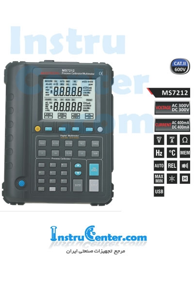 مولتی کالیبراتور مدل MS۷۲۱۲ ساخت شرکت Mastech دارای قابلیت اندازه گیری ولتاژ ۳۰۰ ~۰ V AC/DC و اندازه گیری جریان در رنج ۴۰۰~۰ mA AC/DC میباشد. رنج فرکانس ۳۰ ~ ۴ KHz، رنج مقاومت الکتریکی ۴۰ ~ ۰ K?،رنج دما از ۱۳۰۰ ~۵۰- درجه سانتی گراد میباشد.