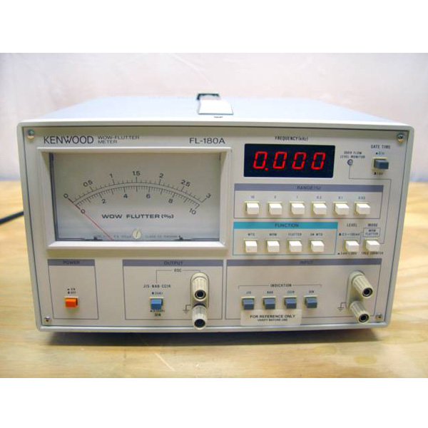 wow flutter meter مدل FL-۱۸۰ A ساخت KENWOOD ژاپن، صدا و لرزش انواع مختلف دستگاه های ضبط صدا، دستگاه های ضبط ویدئو و دستگاه های چرخشی مانند ضبط صوت، VTR و صفحه گردان را مطابق با استانداردهای JIS (ژاپن)، NAB (امریکا)، CCIR (فرانسه) و DIN (آلمان) اندازه گیری میکند.