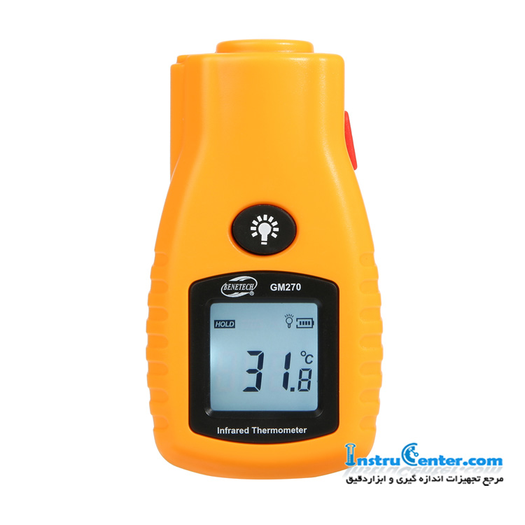 دماسنج لیزری بنتک مدل GM۲۷۰ ساخت کمپانی بنتک چین است که دارای کیفیت بالا و قیمت مناسب است که از این ترمومتر لیزری بنتک مدل GM۲۷۰ برای اندازه گیری دمای سطح جسم مورد استفاده قرار می گیرد که برای اجسام مختلف داغ، خطرناک و بدون تماس با سرعت و ایمن قابل استفاده است.