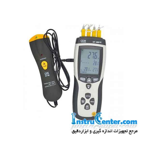 ترمومتر تماسی ۴ کاناله همراه با دماسنج لیزری CEM DT-۸۸۹۱E از ابزارهای مقاوم دستی درجه ۱ آزمایشگاهی (۰.۱۵٪ + ۱ درجه سانتی گراد) هستند.