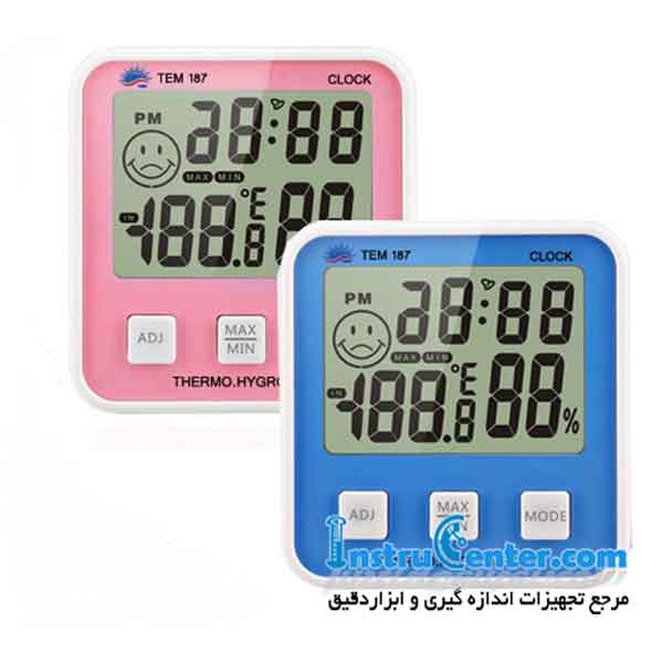 دماسنج و رطوبت سنج اتاق کودک مدل TEM-۱۸۷ ، برای اتاق بچه و داخل خانه ، اداره و اماکن صنعتی و عمومی مناسب می باشد ، دارای دقت خیلی خوب و حساسی در مقابل تغییرات دما و رطوبت می باشد. محدوده ی اندازه گیری دما در مورد این دستگاه ، از منفی ۱۰ تا ۵۰ درجه سانتیگراد و رطوبت بین ۲۰ تا ۹۰ درصد می باشد. این دماسنج بدلیل داشتن نشانگر استیکر خنده و اخم برای مشخص کردن هوای خوب و نامناسب و همچنین رنگ های شاد، بسیار مناسب اتاق کودک و نوزاد، جهت کنترل دما و رطوبت در منزل می باشد.