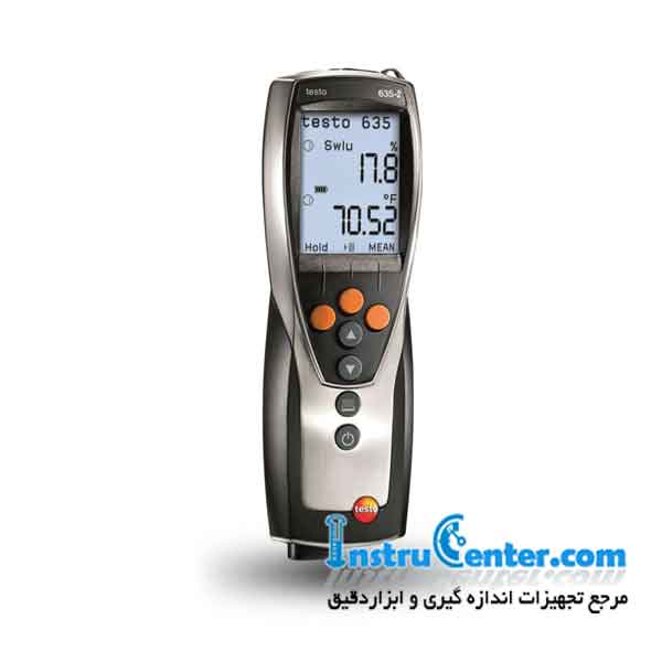 رطوبت سنج و دماسنج ۶۳۵-۲ تستو ساخت آلمان برای انجام انواع اندازه گیری ها در زمینه تهویه مطبوع بسیار مناسب است. دما را از -۴۰ تا +۱۵۰ °C و رطوبت را از ۰ تا +۱۰۰ %RH اندازه گیری می کند. با اتصال حسگرها و کاوشگرهای اختیاری موجود را می توان به دستگاه متصل کرد تا داده های اندازه گیری زیر را برای شما فراهم کند: