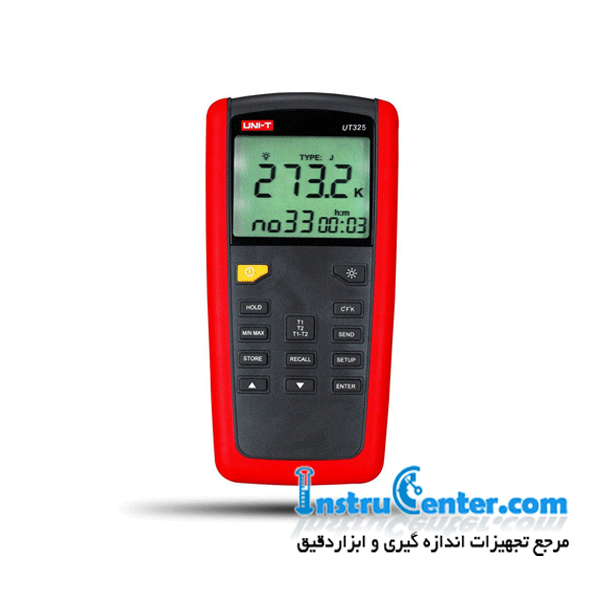 دماسنج تماسی دو کاناله یونیتی UT-۳۲۵ حافظه دار که به صورت تماسی بوسیله ترموکوپل دما را اندازه گیری می کند و دارای دو کانال ورودی است با استفاده از ویژگی ورودی دو گانه می توان دو ورودی دما را به صورت همزمان اندازه گیری کرد.