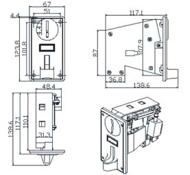 ۱. روی قطر سکه از ۱۸ میلی متر تا ۳۲ میلی متر اعمال شود. ضخامت سکه از ۱.۲ میلی متر تا ۳.۲ میلی متر اعمال شود. ولتاژ کاری DC + ۱۲ ولت است.