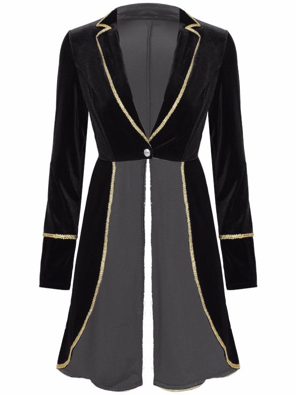کت زنانه دم پرستوی مخملی بزرگسال آستین بلند کت شلوار یقه ای.
