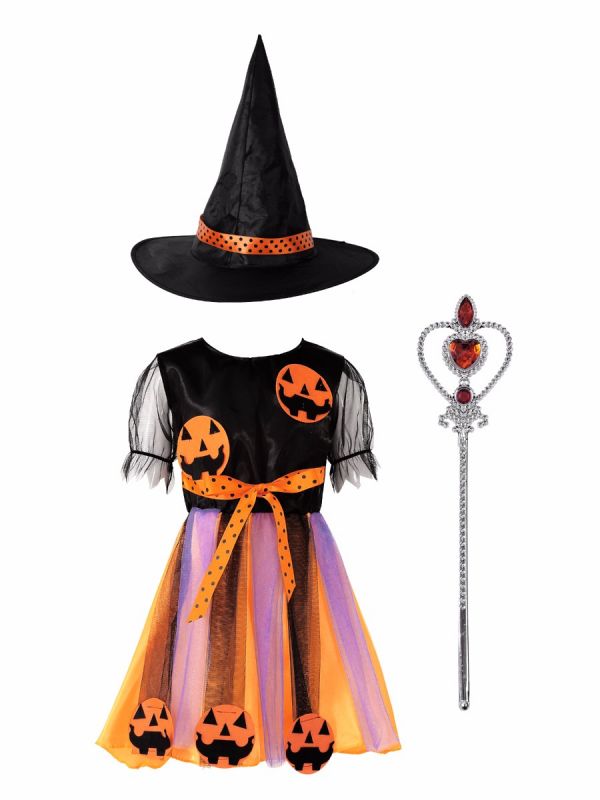 لباس جادوگر کدو تنبل با چوب جادویی و کلاه نوک تیز