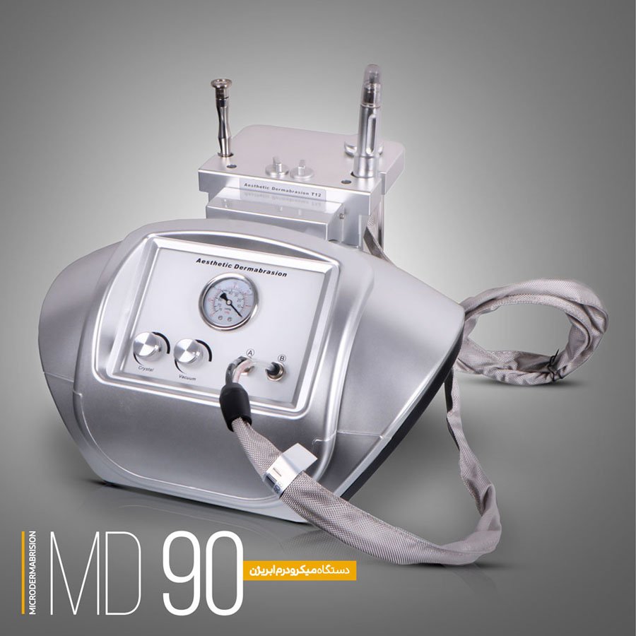 دستگاه میکرودرم ابریژن مدل MD۹۰، دستگاهی با هر دو قابلیت پودری و دایموند است که امکان بکارگیری در کلینیک ها و سالنهای زیبایی را دارد. دستگاه MD۹۰،همراه با ۹ عدد سرهندپیس دایموند متناسب با نواحی مختلف پوست صورت و بدن ارائه میشود. فشار مکش و میزان پاشش پودر در این دستگاه، به راحتی از روی پنل آن قابل تنظیم است. مخزن پودر دستگاه، با دسترسی آسان، امکان افزودن پودر را در حین کار با دستگاه فراهم می کند. به علاوه، سرهندپیس به سادگی تعویض می شود. بنابراین، دستگاه به سرعت برای بکارگیری مجدد آماده میشود.