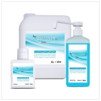 محلول ضدعفونی کننده الکلی جهت ضدعفونی بهداشتی دست و اسکراب جراحی. فرمول درموسپت پلاس بر پایه آخرین تحقیقات به نحوی ساخته شده که بتواند هم یک ضدعفونی با پوشش میکروب کشی بسیار بالا بوده و هم دارای حداقل مواد تحریک کننده پوستی باشد.