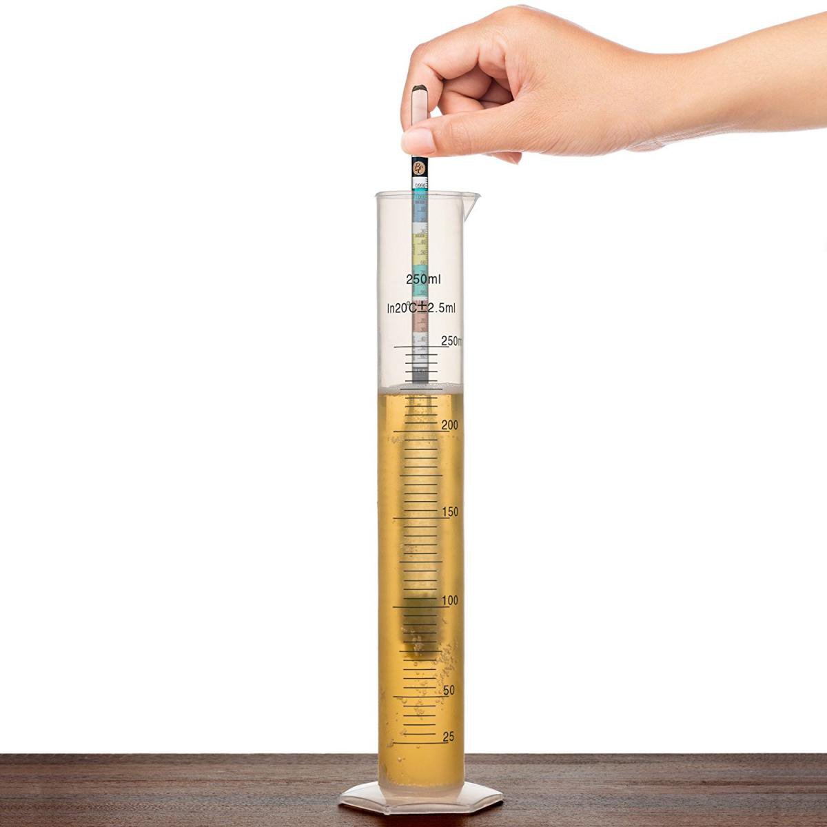 شیرینی سنج مایعات از عدد ۰.۸۰۰ تا ۱.۱۵۰۰ از بالا به پائین درجه بندی شده ، (در بعضی این مقدار از ۰.۹۰۰ تا ۱.۱۲۰ و در بعضی دیگر از ۹۰۰ تا ۱۱۲۰ درجه بندی شده.