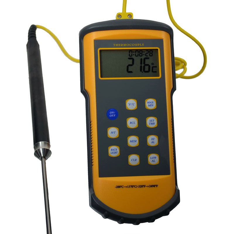 دماسنج صنعتی دیجیتال دارای سنسور بلند و کوتاه جهت اندازه گیری انواع دماها از رنج ۵۰- الی ۱۵۰۰+ درجه سانیگراد بالای صفر را داراست