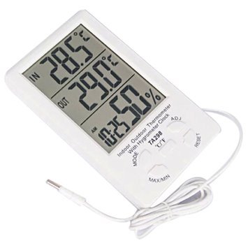 رطوبت سنج و دماسنج دیجیتال سنسوردار (رومیزی - دیواری) و دماسنج یخچال این دستگاه با صفحه نمایشگر بزرک به ابعاد ۱۵۰×۸۸×۲۵