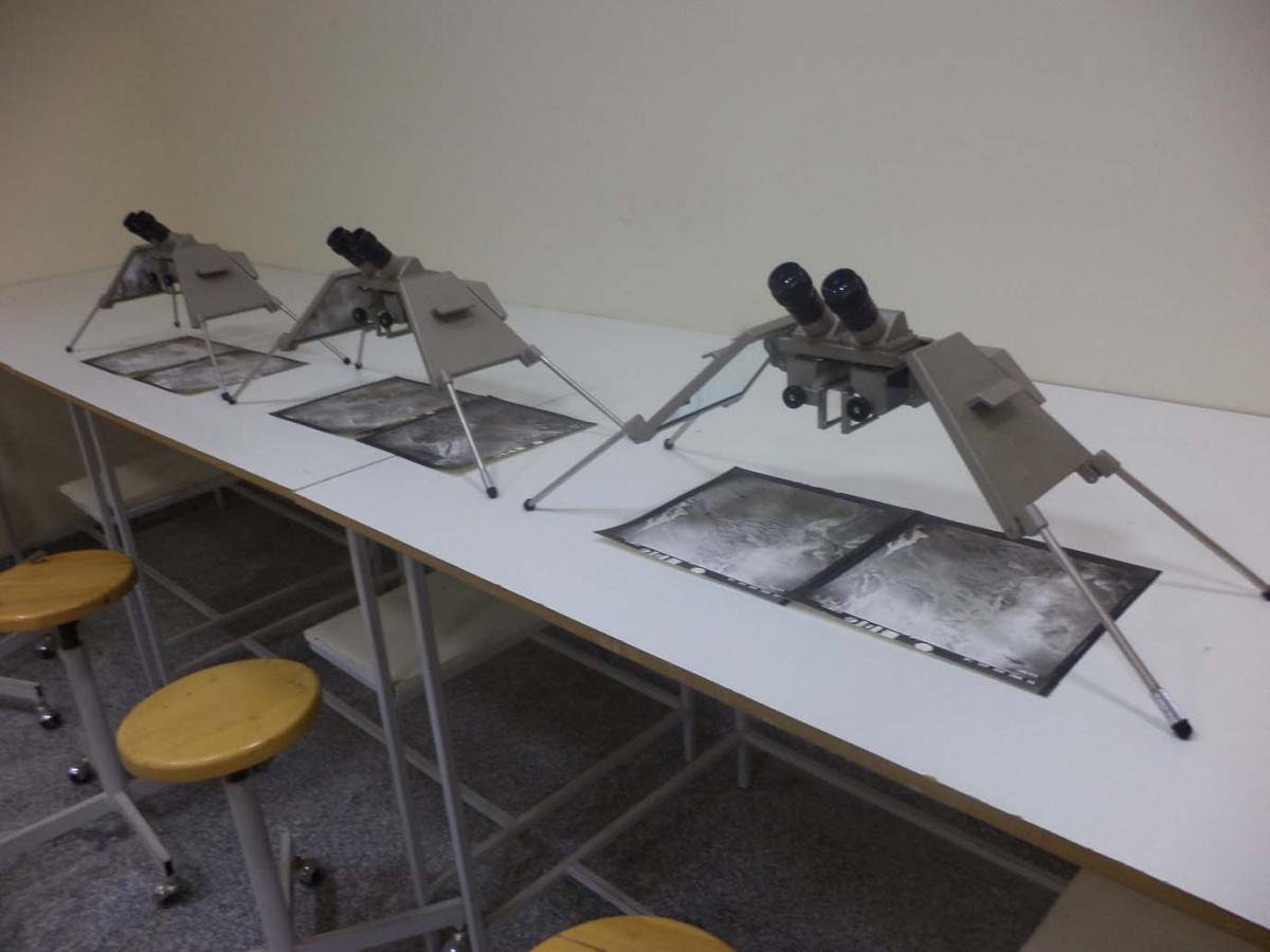 استریوسکوپ رومیزی دستگاه ساده ای است که با استفاده از آن می توان از منطقه پوشیده توسط یک زوج عکس هوایی پوشش دار که به طور افقی و موازی در زیر استریوسکوپ قرار داده شده اند