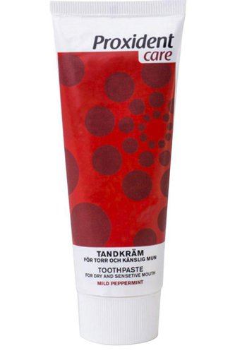 خميردندان Proxident care رنگ قرمز مخصوص دهان‌هاى بسيار خشك و لثه‌هاى حساس، حاوى گليسيرين