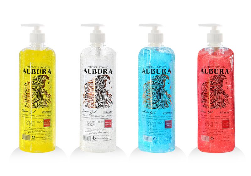 ژل موی سر آلبورا درچهار رنگ سفید، آبی، زرد و قرمز و در وزنهای۱۵۰ml,۲۰۰mlپمپی و۷۵۰ml خانواده تولید می گردد.