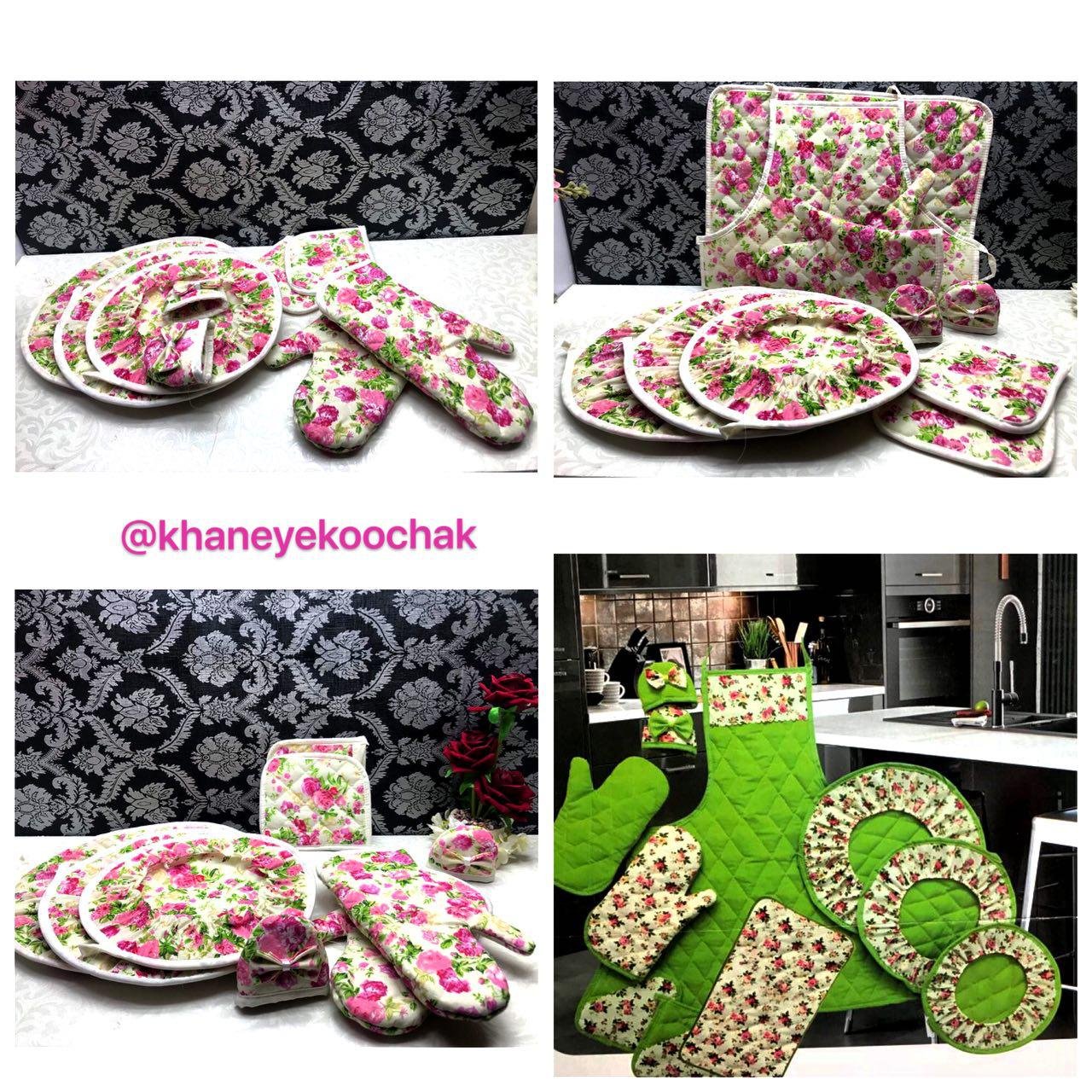 شامل:پیشبند،۳سایز دم کنی،دستکش فر،دستگیره،نمگیر سایز بزرگ برای ظرف