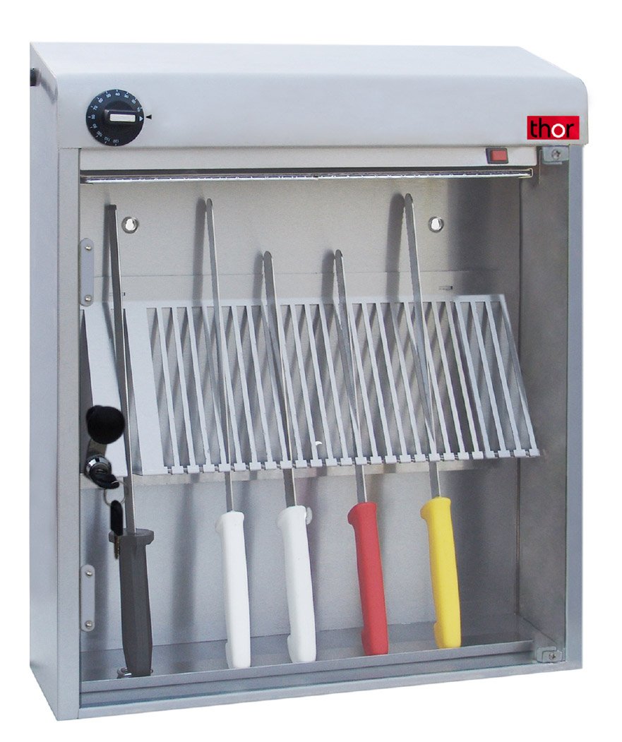 دستگاه استریل چاقوی thor کاملا از استیل ضد زنگ ساخته شده و توسط نور UV ( فرابنفش ) قابلیت از بین بردن ۹۹.۹ درصد از باکتری های مضر مانند E-Coli ، Salmonella و Listeria را دارد .