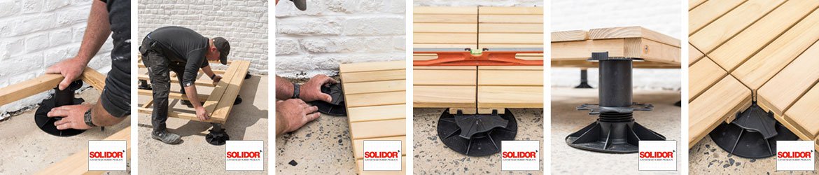 پایه خودتراز سولیدور Solidor ، با قابلیت تنظیم ارتفاع از ۶ میلیمتر تا ۱۰۰۰ میلیمتر ( ۱ متر ) و تنظیم شیب تا ۱۰ درصد، مقاوم در برابر اشعه یو وی ( UV ) قدرت تحمل هزار کیلوگرم نیروی فشار استاتیکی؛ مناسبترین انتخاب برای کف های کاذب و دکینگ های چوبی است.