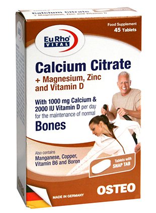 قرص کلسیم سیترات یوروویتال حاوی کلسیم + ویتامین D۳ + منیزیم + روی + سایر املاح و ویتامینها میباشد.