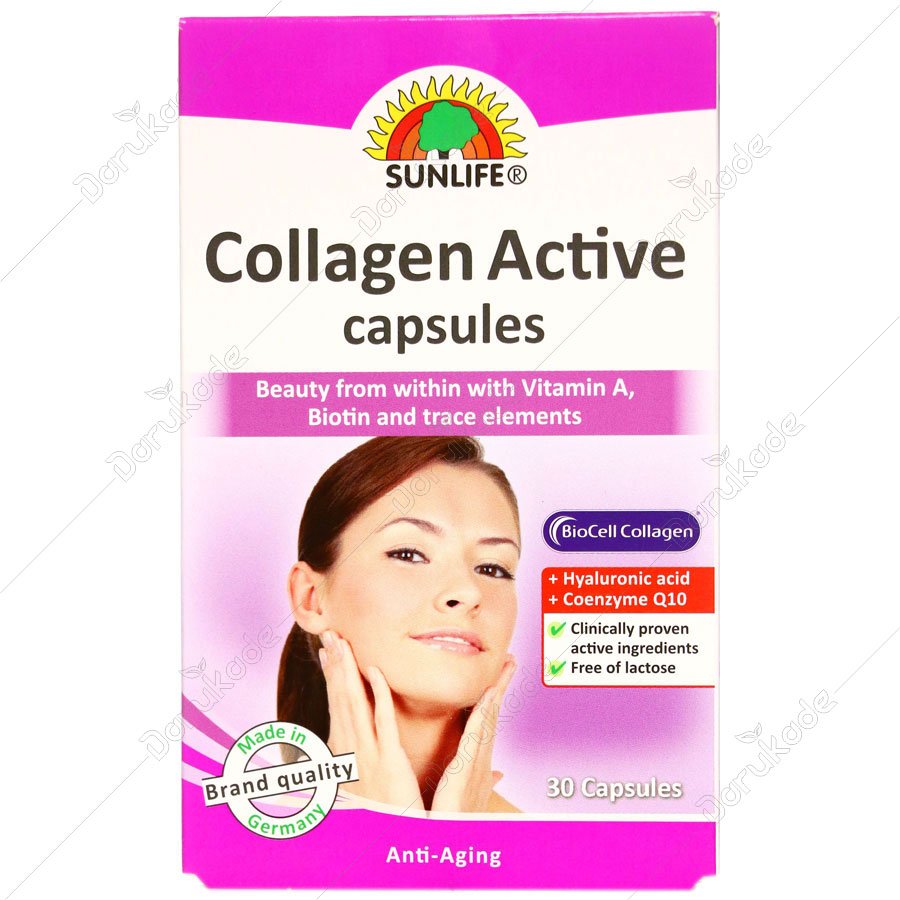 کپسول کلاژن اکتیو سان لایف با تامین مواد مورد نیاز پوست ضمن تامین نیازهای تغذیه ای آن از پیری پوست جلوگیری کرده، جوانی و شادابی را برای آن بارمغان می آورد. مواد موثره کپسول کلاژن اکتیو علاوه بر اینکه هر کدام دارای نقشی موثر در تغذیه و حفظ سلامت پوست دارند دارای اثرات سینرژیکی (هم افزایی) بر روی هم بوده و اثرات همدیگر را کامل می کنند.