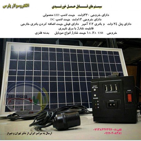 دارای پنل ۲۴ وات   و باتری ۷.۲ آمپر   دارای فیش جهت اضافه کردن باتری خارجی
