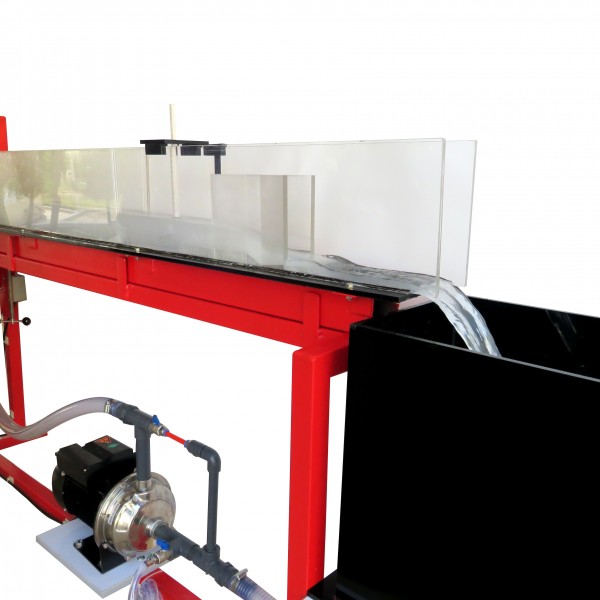 با استفاده از اين دستگاه دانشجويان با انجام آزمايش قادر به محاسبه رابطه بين سطح آب جريان بالا دست و تخليه براي سرريزهايي با اشكال مختلف مي شوند. پس از اين مرحله مقادير حاصله با نتايج تئوري مقايسه خواهد شد.در این دستگاه سرريزها در يك شكاف آب بندي شده در كانال قرار مي گيرند. آب ازطريق كانال و سرريز جريان يافته و به مخزن مي ريزد و دانشجويان مي توانند بوضوح تخليه را مشاهده كنند. سطح آب آزاد با استفاده از خط كش هاي مدرج نصب شده روي بدنه دستگاه قابل اندازه گيري است.