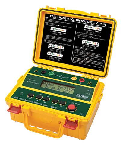محصول ارت تستر با مدل GRT ۳۵۰ ساخت کشور آمریکا می باشد کهتوانایی اندازه گیری مقاومت زمین و مقاومت ویژه خاک را دارا می باشد.با استفاده از این دستگاه می توان به صورت ۴ سیمه ، سه سیمه و دو سیمه مقاومت را محاسبه کرد.با صفحه نمایشگر دو قسمتی و بزرگ دستگاه به راحتی می توان مقادیر اندازه گیری شده را در مکان های دشوار و تاریک مشاهده کرد.قابلیت ذخیره داده تا ۲۰۰ مقدار را دارد.همچنین این دستگاه طبق استاندارد ایمنی CAT IV ۳۰۰ V طراحی و ساخته شده است.