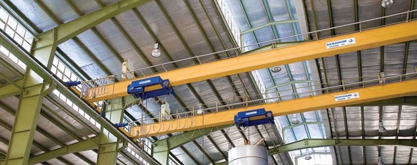 کاربرد و مزایا جرثقیل سقفی جفت پل: جرثقیل‌های سقفی جفت پل بهترین راه حل برا ی جابجایی مواد در سالن‌هایی است که دهانه و ظرفیت بیشتری مورد نیاز می‌باشد و با این نوع جرثقیل‌ها از ارتفاع بیشتری می‌توانید استفاده کنید و با پیشنهادهای مهندسی و ساخت سازه مطابق استاندارد و با وزن مرده کم می‌توانید بهترین استفاده را نیز از لحاظ اقتصادی ببرید، همچنین دیگر مزیت این نوع جرثقیل‌ها این است که با وجود راهروی انتخابی در بدنه جرثقیل علاوه بر سهولت در دسترسی و امکان تعمیر قطعات کالسکه (ترولی)، امکان مناسبی برای تعمیر و تعویض لامپ‌های سالن، تأسیسات گرمایشی سالن و خطوط برق رسان را نیز فراهم می‌کند.