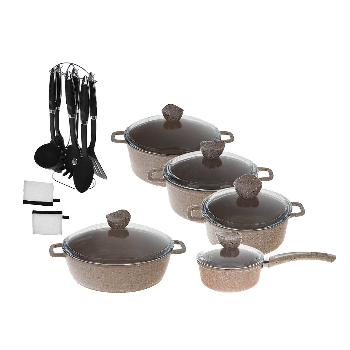 A service that will be used in the kitchen for many years to come. The Nalino service is made of perfectly standard materials that will not threaten the health of you and your family under any circumstances. The highly resistant body and anti-skid coating make it one of the most reliable and special options. Sometimes you spend a little on a commodity that you will use in the kitchen for many years. This beautiful set is one of those unique choices. This pot service is one of the most functional appliances you need in any kitchen, with the variety of pot sizes. This set has a very thick and durable body and is used to cook a variety of Iranian dishes. Alosa Model Nalino Fabric Cooking Service With all the features mentioned above, it will be an ideal choice in your shopping cart.