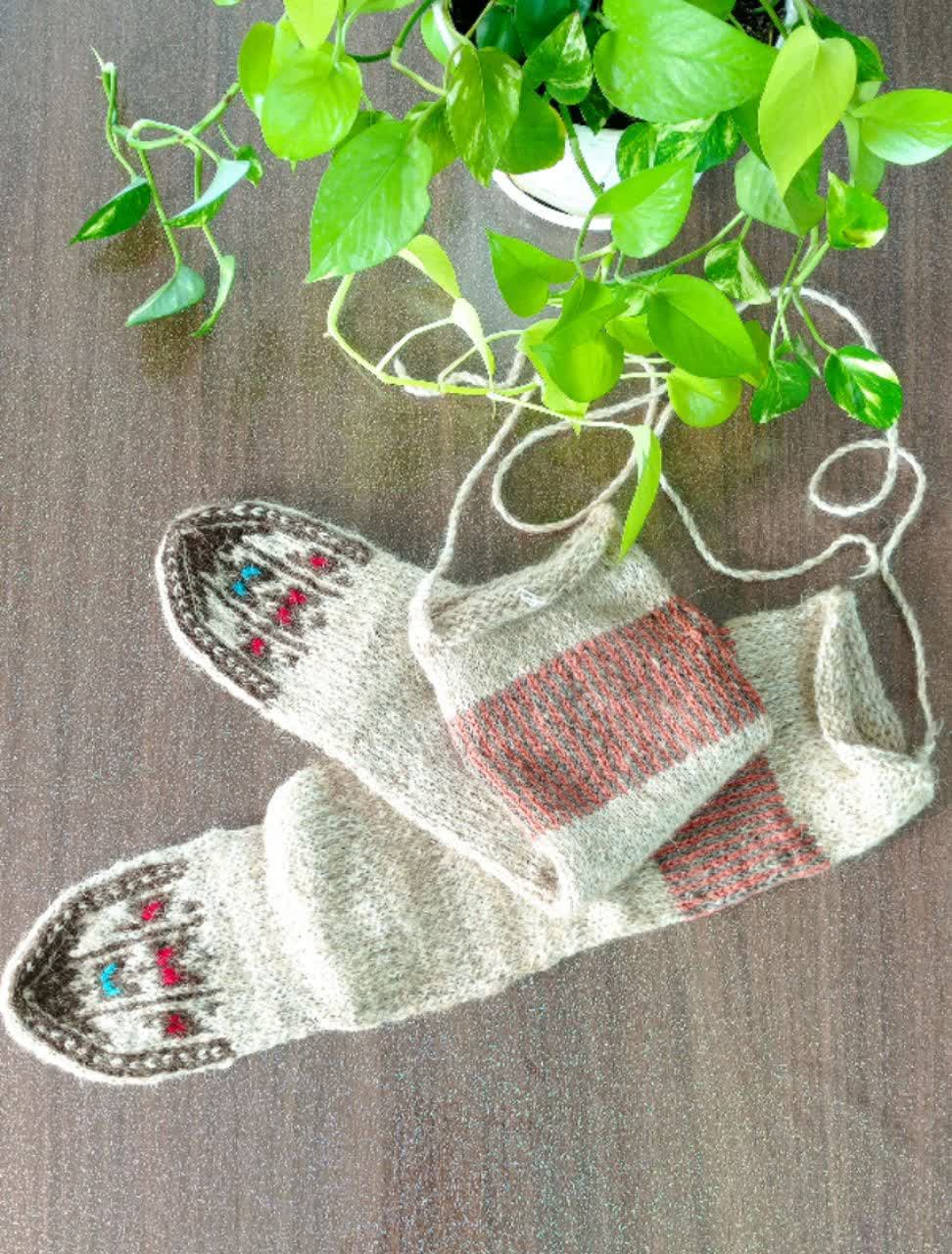 Product name: Peshmi socks Product code: 2-3-9H traditional design Type of work: Pishmi Manufacturing method: hand stitched Installation: with cold water Time spent: 3 three days Can be ordered in children's and adult sizes