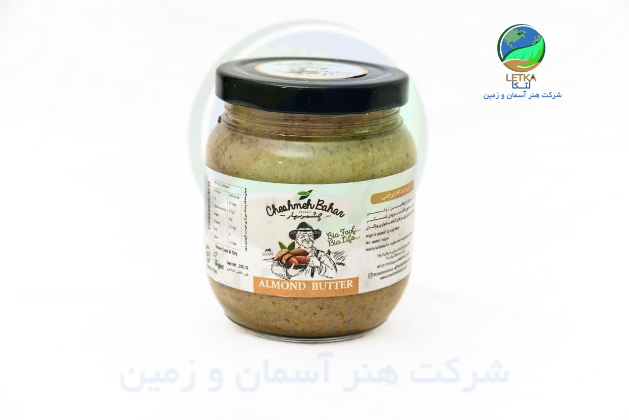 100% pure and organic almond butter 250 grams of Chashme Bahar S12-1-11 Rich in vitamin E and fiber No added sugar Suitable for vegetarian and vegan diets Contains natural isolated oil