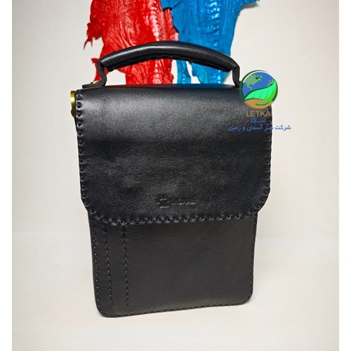 Cow leather hand-embroidered shower bag with wax thread and full leather lining