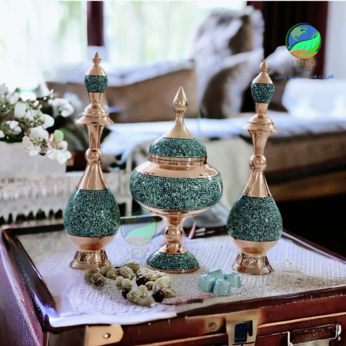 Teng Sarahi set 32 ​​and chocolatier 30 turquoise copper Two pieces of 32 cm tall turquoise copper tights and a 30 cm turquoise copper chocolate bar.