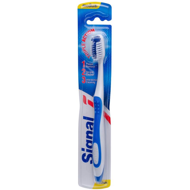 مسواک سیگنال سه منظوره به دلیل عملکرد سه‌گانه‌ای که دارد یکی از بهترین محصولات برای حفظ بهداشت دهان و دندان است. برس موجی شکل مسواک پلاک‌ها را به خوبی از مینای دندان پاک کرده و به عمق فضاهای بین دندانی نفوذ می‌کند. پشت برس مسواک مجهز به زبان شور بوده و باکتری‌های عامل بوی بد دهان را می‌زداید. بدنه‌ی مسواک تریپل اکشن طراحی ارگونومی دارد و دسترسی را به تمام نقاط دهان راحت می‌کند تا پاک‌کنندگی بیشتری داشته باشد.